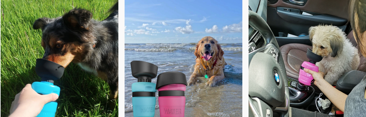 No WATER LEAKAGE and NO WASTE :Top rotation buckle design, to ensure that water does not return, will not pollute the water in the dog water bottle; sealed silicone gasket inside the cover to ensure no water leakage, do not worry about getting your travel wet Pack; can also be squeezed out without wasting water even if there is only small amount of water in the water bottle because it has a built-in water pipe.